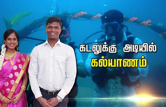 சென்னை நீலாங்கரையில் கடலுக்கு அடியில் பாரம்பரிய முறைப்படி திருமணம் செ ய் து கொ.ண்.ட தம்பதியின் வித்தியாசமான முயற்சி அனைவரையும் வியப்பில் ஆ.ழ்.த்தியுள்ளது.