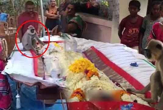 உணவளித்தவர் மரணம்… கையை பிடித்து முத்தமிட்டு தேம்பி தேம்பி அழுத குரங்கு : நெஞ்சை உலுக்கும் வீடியோ!!