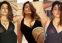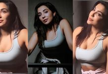 மொத்தமா கிழிச்சு விட்டு முன்னழகு எடுப்பாக தெரிய சூடான போஸ் கொடுத்த சாக்ஷி அகர்வால்!!