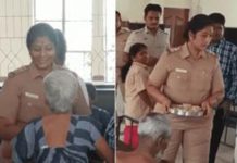 பிள்ளைகளால் கைவிடப்பட்ட வயதான பெற்றோர்… மகள் போல விருந்து அளித்த பெண் போலீஸ் அதிகாரி!!