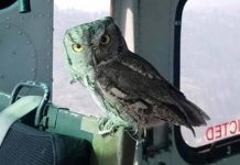 உயிரைக் காப்பாற்ற ஹெலிகப்டரில் தஞ்சம் புகுந்த ஆந்தை… தீயாய் பரவும் புகைப்படம்!!