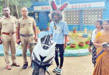 முயல் ஹெல்மெட் அணிந்து மக்களை அச்சுறுத்திய இளைஞனுக்கு நேர்ந்த பரிதாபம்!!