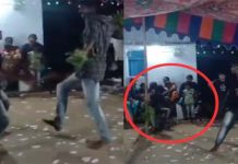 விநாயகர் சதுர்த்தி விழாவில் நடனமாடிக்கொண்டிருந்த இளைஞர் இருவரில் ஒருவர் மயங்கி விழுந்து உயிரிழந்த அதிர்ச்சி காட்சி வெளியாகியுள்ளது.