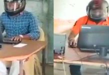 கட்டடம் இடிந்து விழும் அபாயம்.. ஹெல்மெட் அணிந்து பணிபுரியும் அரசு ஊழியர்கள்!!