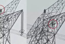 150 அடி உயர மின் கோபுரத்தில் ஏறி காதலி, காதலன் சண்டை.. அதிர்ச்சி வீடியோ!!