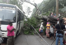 100 வருடங்கள் பழமையான மா மரமொன்று முறிந்து விழுந்ததால் வீடு, பேரூந்து சேதம்!!