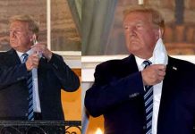 மருத்துவமனையிலிருந்து வெள்ளை மாளிகை திரும்பிய டிரம்ப் தனது முகக் கவசத்தை கழற்றி போஸ் கொடுத்தது சர்ச்சையை கிளப்பியுள்ளது.