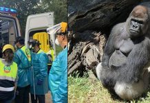 Malabo என்ற கொரில்லாவை, அது பிறந்ததிலிருந்து 29 வயது வரை வளர்த்துவந்த பயிற்சியாளரான 46 வயது...