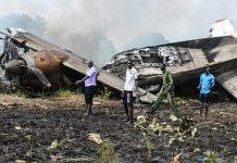 தெற்கு சூடான் தலைநகர் ஜூபாவிற்கு அருகிலுள்ள விமான நிலையத்திலிருந்து தென்மேற்கு ஏவியேஷனின் ஏஎன்-26 விமானம் புறப்பட்ட சிறிது நேரத்திலேயே கீழே விழுந்து தீப்பிடித்தது.