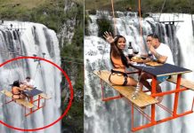 அந்தரத்தில் தொங்கியபடி டின்னர்.. 295 அடி உயரத்தில் உணவருந்தும் ஜோடி!!