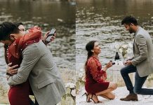 தரையில் முட்டியிட்டு அந்த இளைஞரிடம் ரோஜா பூ கொடுத்து...