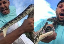 லாஸ் ஏஞ்சல்ஸைச் சேர்ந்த பாம்பு பிடிப்பவரான Nick Bishop (32) என்பவர் ப்ளோரிடாவில் மலைப்பாம்பு ஒன்றைப் பிடித்துள்ளார்.